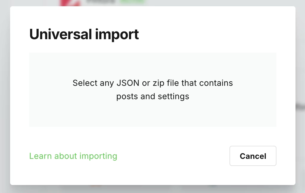 Đăng nhập vào trang Ghost(pro), chuyển đến mục Import/Export. Sau đó chọn Universal Import, chọn file .json sau đó ấn Import
